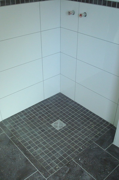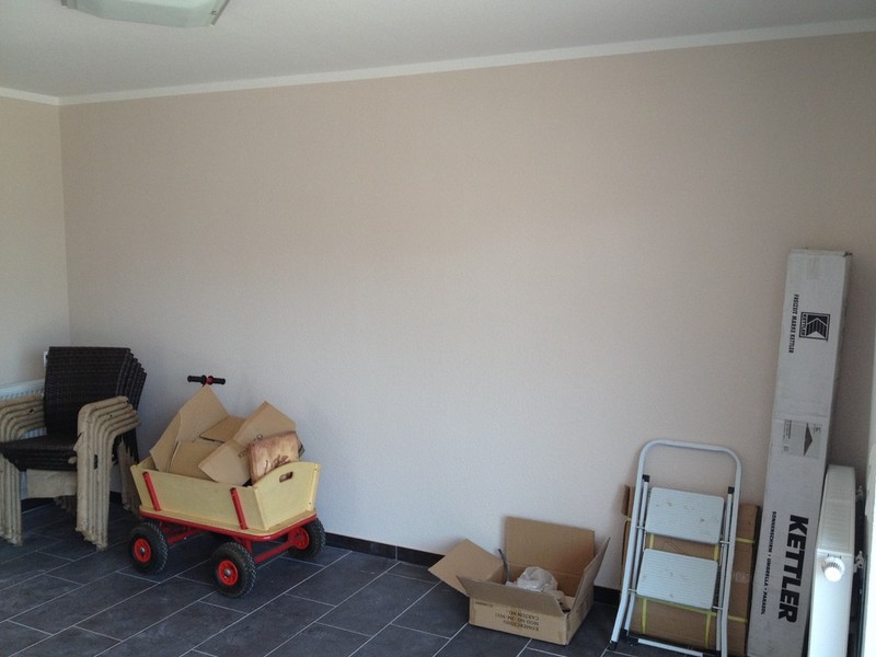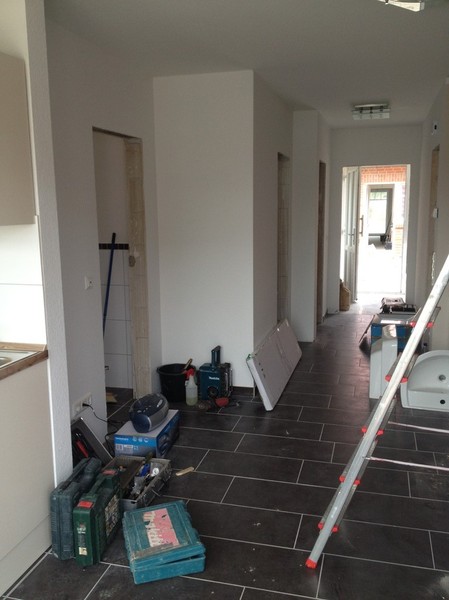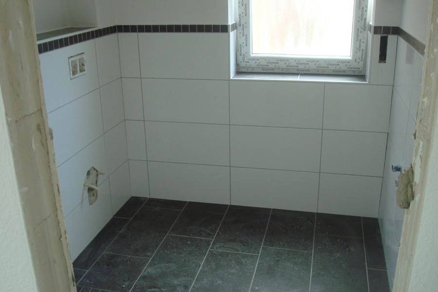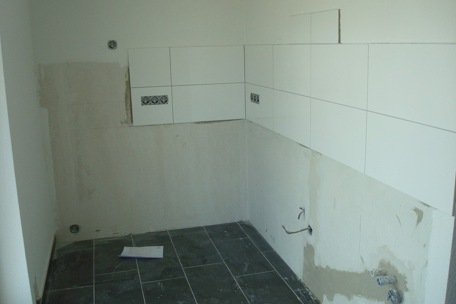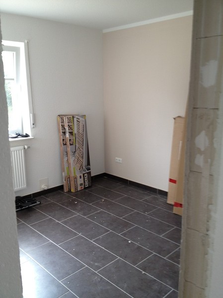 Die Fliesen sind drin, Tapete und gestrichen.